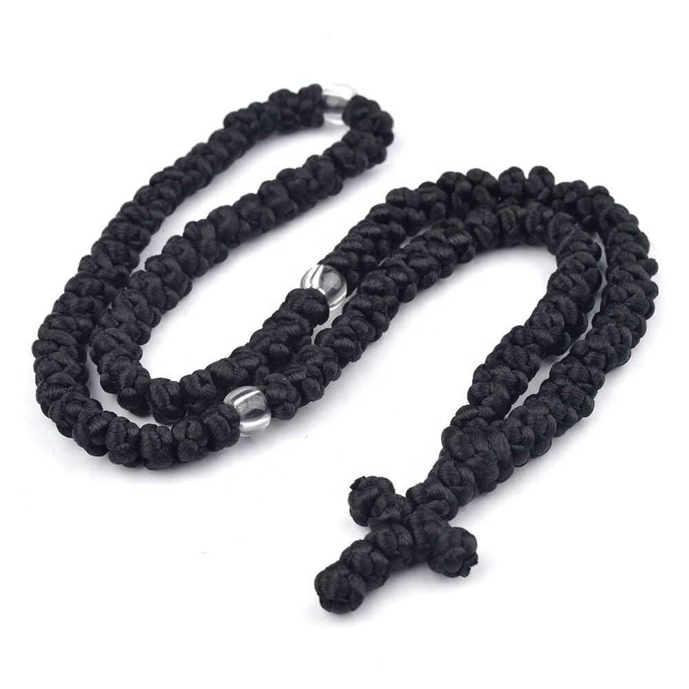 Dieses Komboskini ist schwarz, in klassischer Ausführung gefertigt, mit 100 Knoten und einer Gesamtlänge von ca. 30 cm. Die schlichte Gestaltung folgt bewusst der Tradition und lenkt den Blick auf das Wesentliche.
