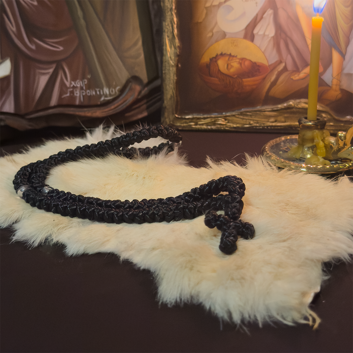 Jeder Knoten steht für ein gesprochenes Gebet – nicht als mechanisches Zählwerk, sondern als Hilfe zur Sammlung und inneren Konzentration. Das Komboskini unterstützt dabei, das Gebet bewusst zu strukturieren und in den Alltag einzubinden.